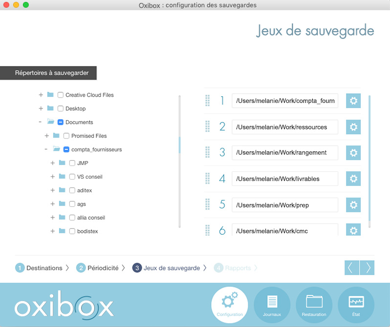 Sélectionnez ensuite le(s) répertoire(s) source(s) dans l’arborescence du poste de travail pour les ajouter à la liste de jeux de sauvegarde.