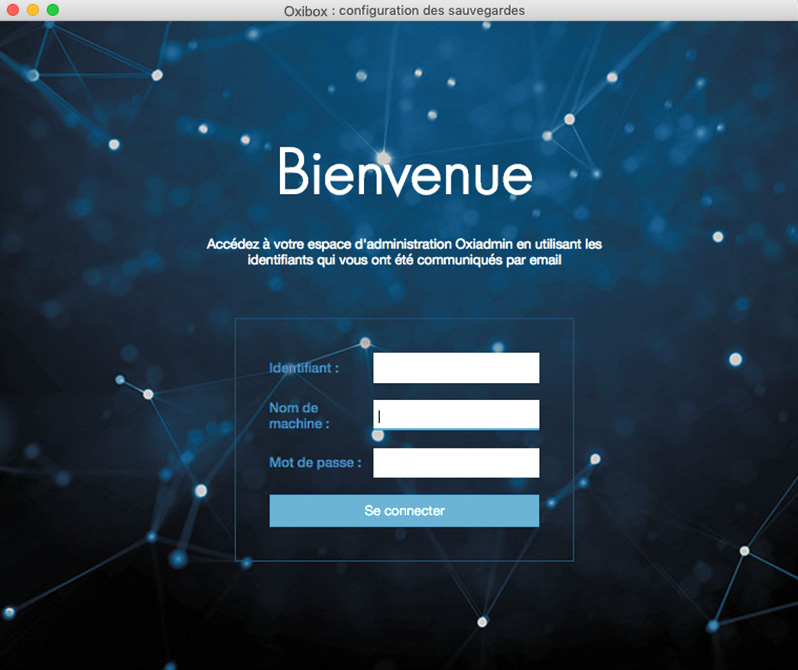 Lors de la première connexion sur l’agent Oxibox, renseignez vos identifiants, ainsi qu’un nom de machine.