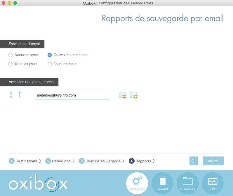 Pour vous assurer de la bonne exécution de la sauvegarde, vous pouvez demander à recevoir un rapport des sauvegardes par email